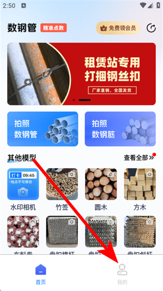 1、打開數(shù)鋼管APP,點(diǎn)擊底部導(dǎo)航欄的我的,進(jìn)入個(gè)人頁面。
