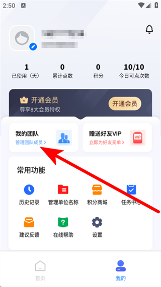 2、在個(gè)人頁面中,點(diǎn)擊我的團(tuán)隊(duì),進(jìn)入團(tuán)隊(duì)管理的界面。