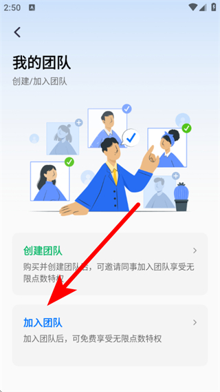 3、在團(tuán)隊(duì)管理的界面,點(diǎn)擊加入團(tuán)隊(duì),進(jìn)入加入團(tuán)隊(duì)頁面。