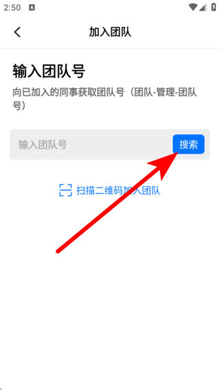 4、在加入團(tuán)隊(duì)頁面,輸入團(tuán)隊(duì)號后點(diǎn)擊搜索,按照提示完成團(tuán)隊(duì)加入操作。