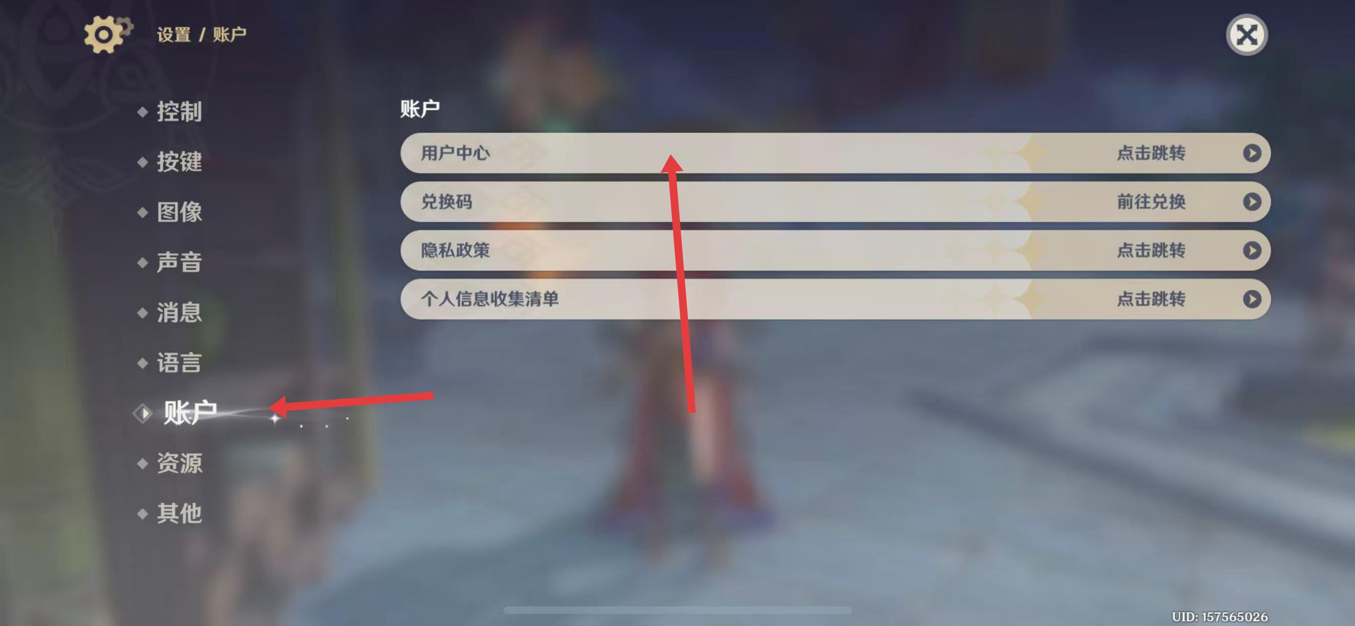 3、進(jìn)入賬戶設(shè)置界面后,點擊用戶中心后的點擊跳轉(zhuǎn),進(jìn)入米哈游通行證頁面。