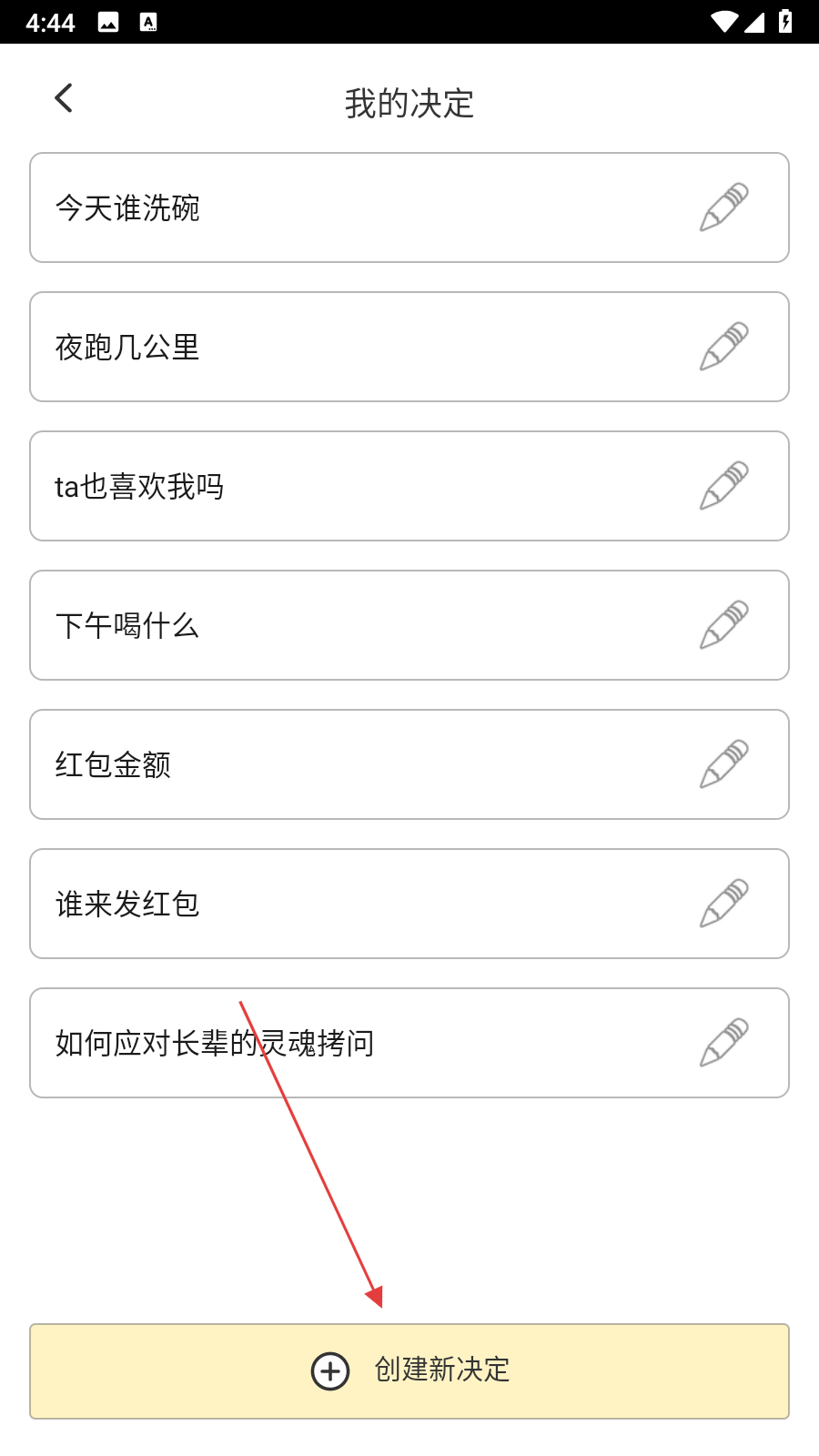 2、在我的決定頁面,點擊底部的創(chuàng)建新決定按鈕,進入添加決定的設置界面。