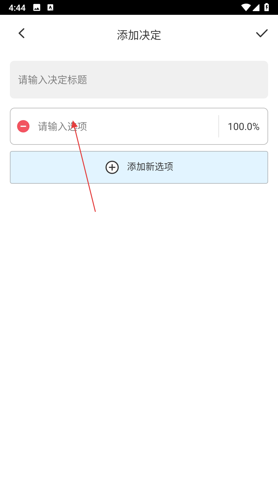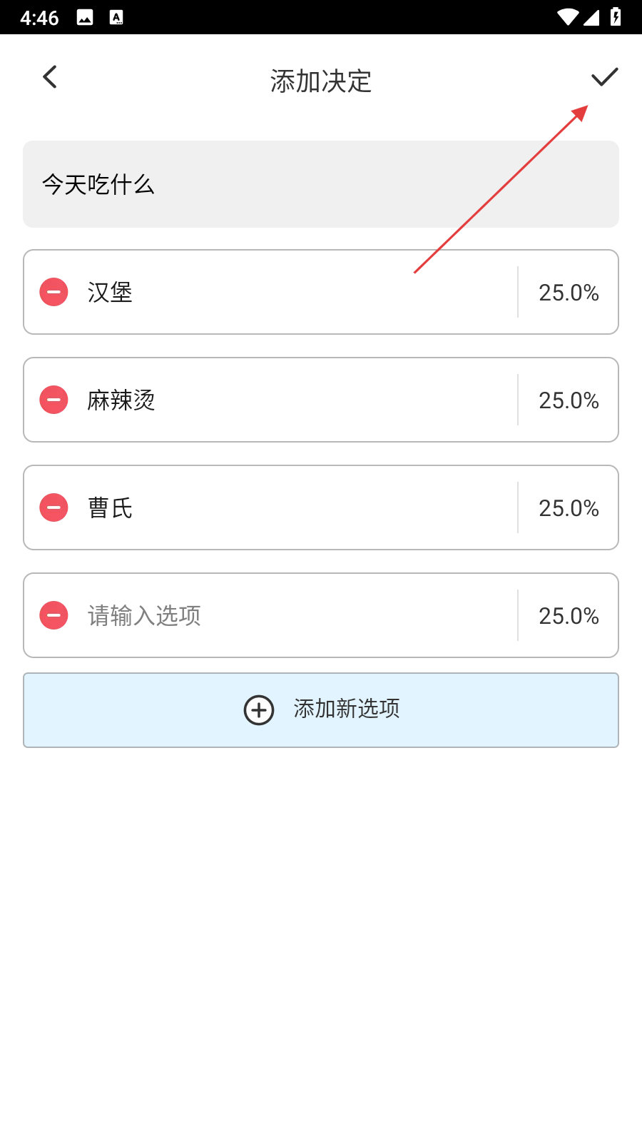 4、填寫好標題和選項后,點擊界面右上角的對勾按鈕保存該決定。