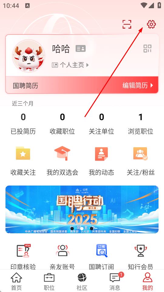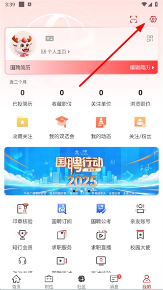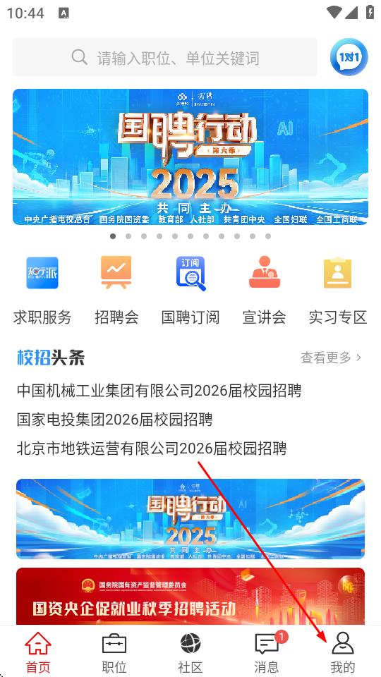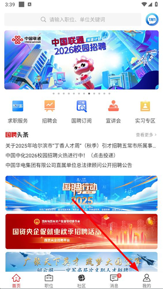 1、在國聘app首頁點(diǎn)擊我的選項(xiàng),進(jìn)入個人頁面。