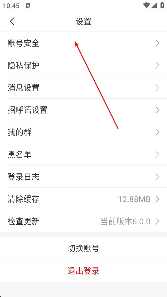 3、在設(shè)置頁面,點(diǎn)擊賬號安全選項(xiàng)。