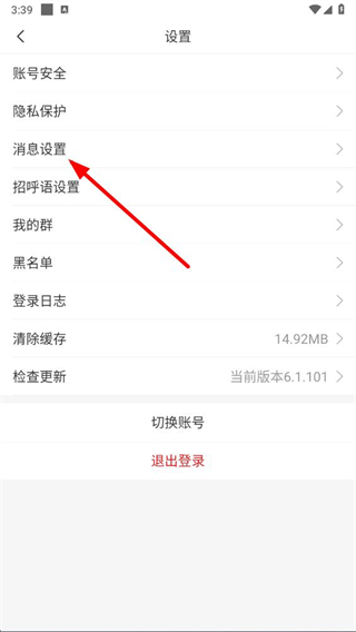 3、在設(shè)置頁面點(diǎn)擊消息設(shè)置選項(xiàng),進(jìn)入消息設(shè)置頁面。