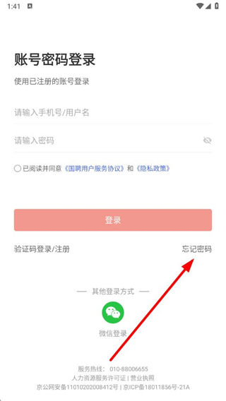 2、在賬號密碼登錄頁面,點(diǎn)擊忘記密碼進(jìn)入密碼重置流程。