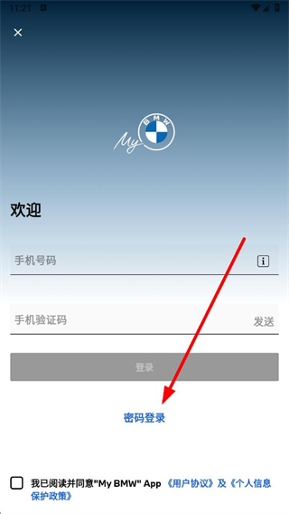 2、在登錄頁面中,點擊密碼登錄選項,切換至密碼登錄的操作界面。