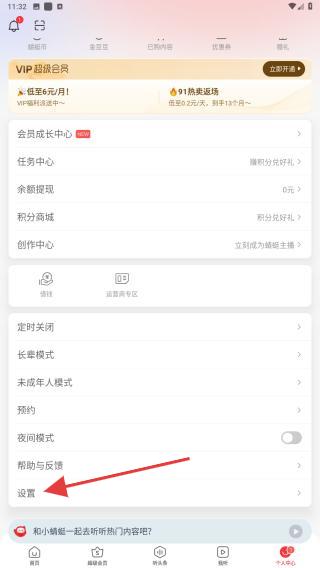 2、進入個人中心的頁面內(nèi),向下滑動找到并點擊設置的圖標。