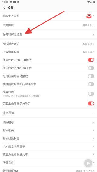 3、在設置的頁面內(nèi),點擊賬號和綁定設置的功能按鈕。