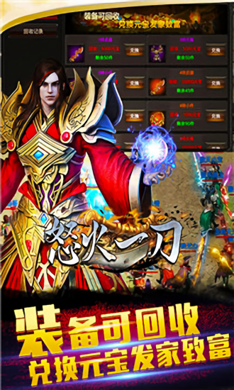 戰(zhàn)神蚩尤怒火一刀是一刀爆率超高,讓你能輕松獲得各種神級(jí)裝備的傳奇游戲,在戰(zhàn)神蚩尤怒火一刀中還有非常自由的交易系統(tǒng),讓你的元寶能發(fā)揮最大用處,游戲中還有非常強(qiáng)大的武器,讓你能享受刀刀暴擊的快感
