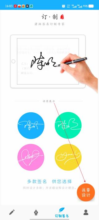 2、在展示多款簽名樣式的頁(yè)面中,挑選心儀的簽名風(fēng)格,接著點(diǎn)擊我要設(shè)計(jì)按鈕。