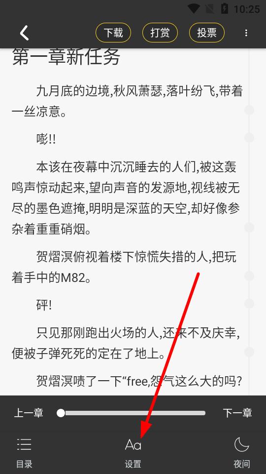 3、在閱讀界面,點擊底部中間位置的設(shè)置圖標(biāo)。