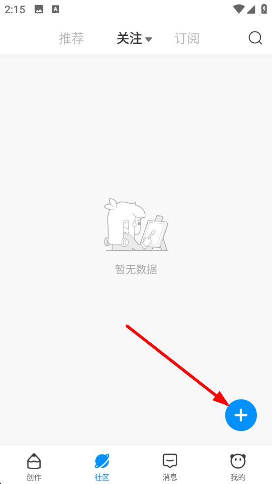 2、在社區(qū)界面右下角,點(diǎn)擊藍(lán)色加號按鈕,進(jìn)入動態(tài)發(fā)布準(zhǔn)備界面。