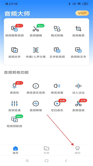1、打開音頻大師APP,在首頁內(nèi)點擊右下角我的圖標。