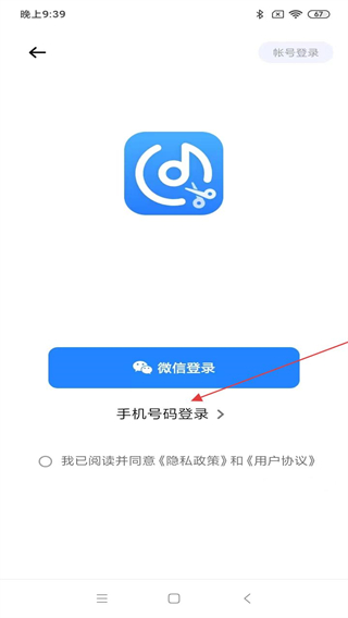 3、進入登錄的頁面內(nèi),點擊手機號登錄的按鈕。