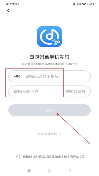 4、在該頁面內(nèi),輸入手機號、驗證碼,再點擊登錄的按鈕即可。