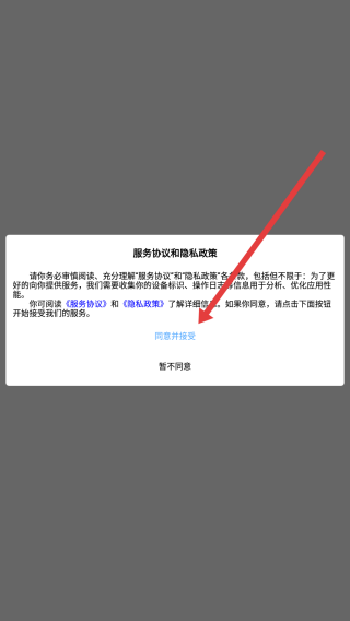 1、使用小北學(xué)生應(yīng)用,需先閱讀服務(wù)協(xié)議和隱私政策,點擊同意并接受,才可進(jìn)入后續(xù)環(huán)節(jié)。