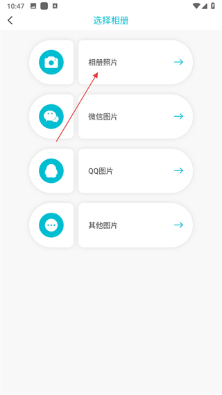 2、掃描完成后,進(jìn)入選擇相冊(cè)頁面,根據(jù)需要恢復(fù)的圖片來源,點(diǎn)擊相冊(cè)照片選項(xiàng)。