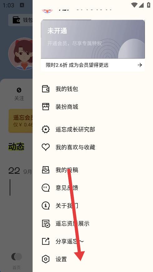 3、在彈出的側(cè)邊菜單中,找到并點(diǎn)擊設(shè)置選項(xiàng)。