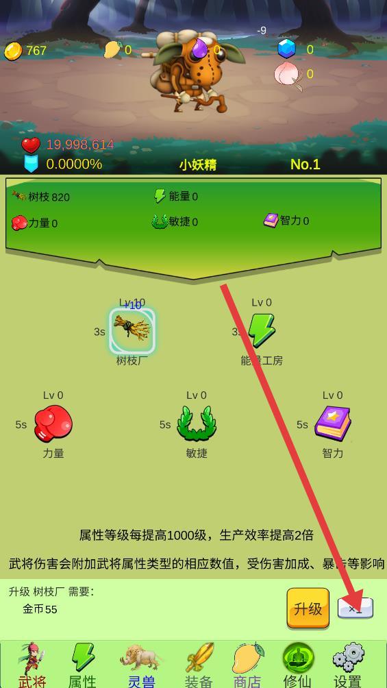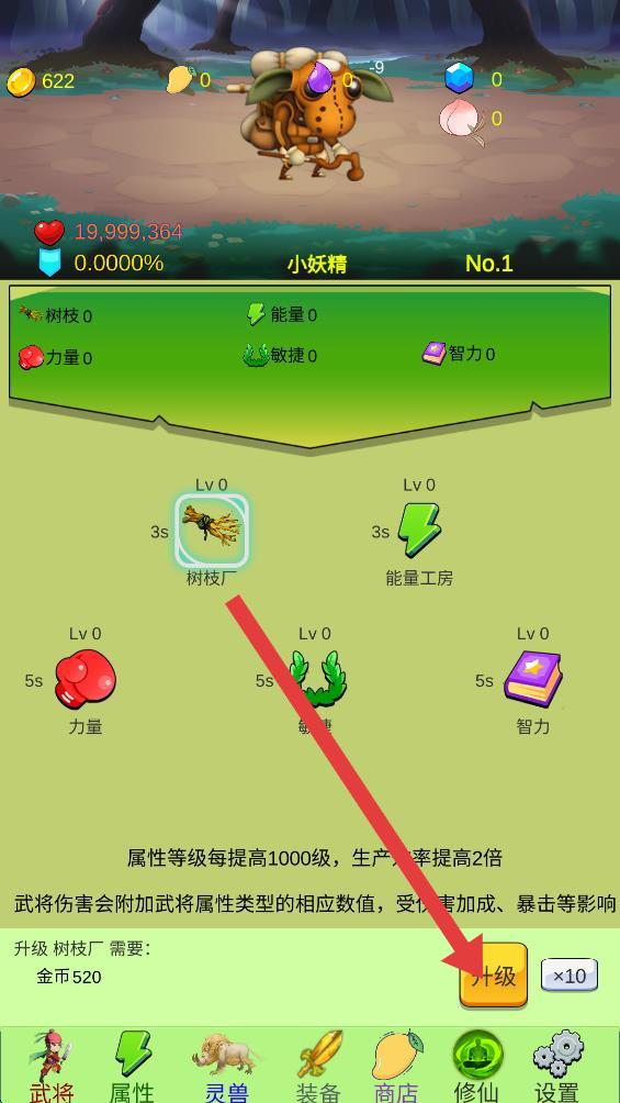 4、選擇好倍數后,點擊升級按鈕,即可完成屬性升級。