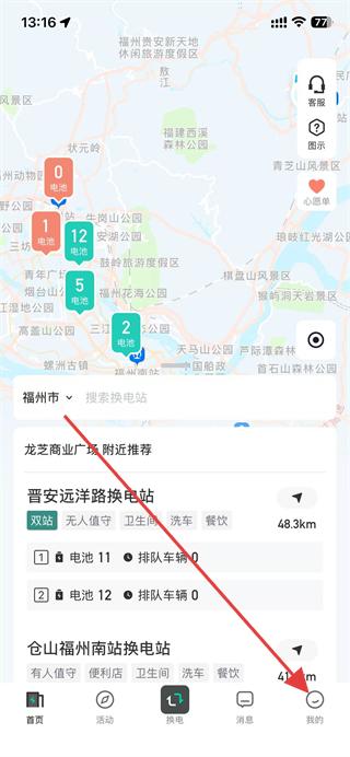 3、一鍵推薦,地圖上會(huì)標(biāo)識(shí)出站點(diǎn)位置,以及最佳站點(diǎn),即刻開(kāi)始換電之旅。