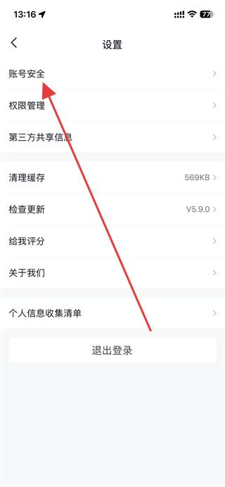 3、在設(shè)置頁(yè)面中,點(diǎn)擊賬號(hào)安全,進(jìn)入賬號(hào)安全頁(yè)面。