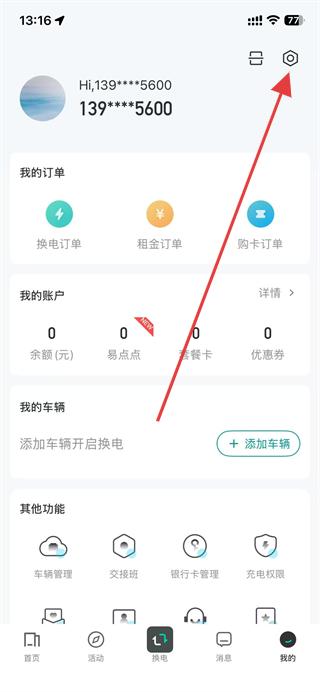 1、打開(kāi)易易換電APP,點(diǎn)擊底部導(dǎo)航欄右側(cè)我的選項(xiàng)。