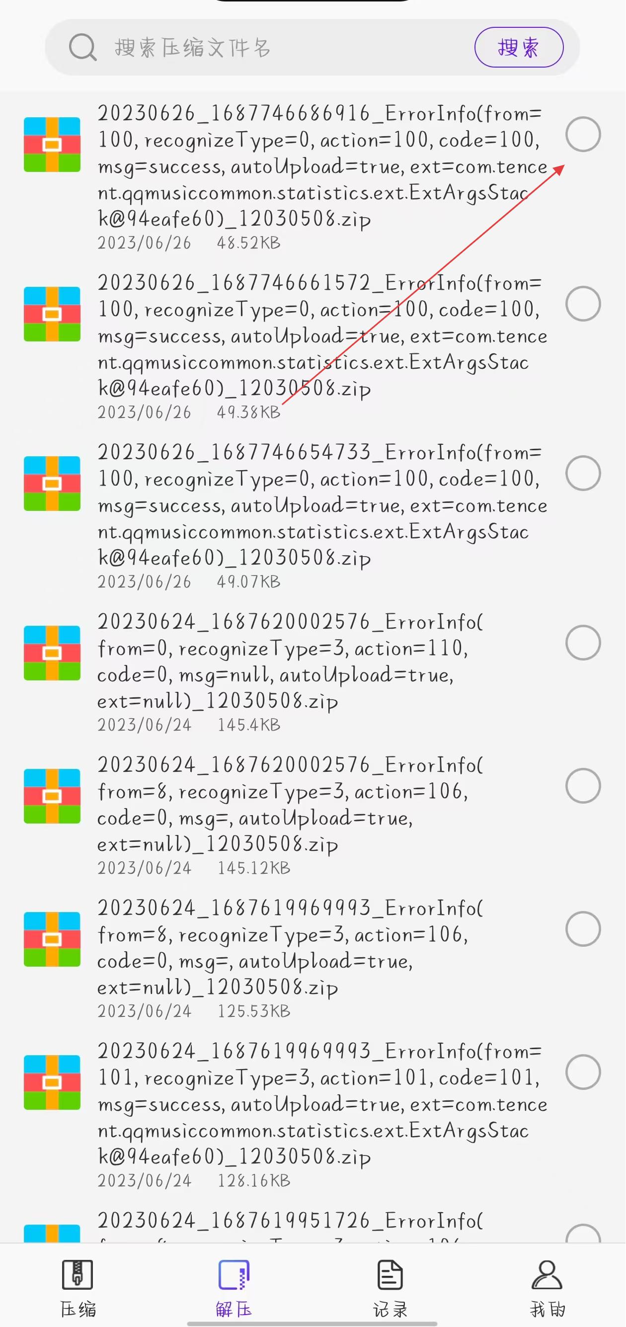 4、解壓完成后,會跳轉(zhuǎn)到解壓記錄頁面,查看已解壓的文件包及相關(guān)信息。