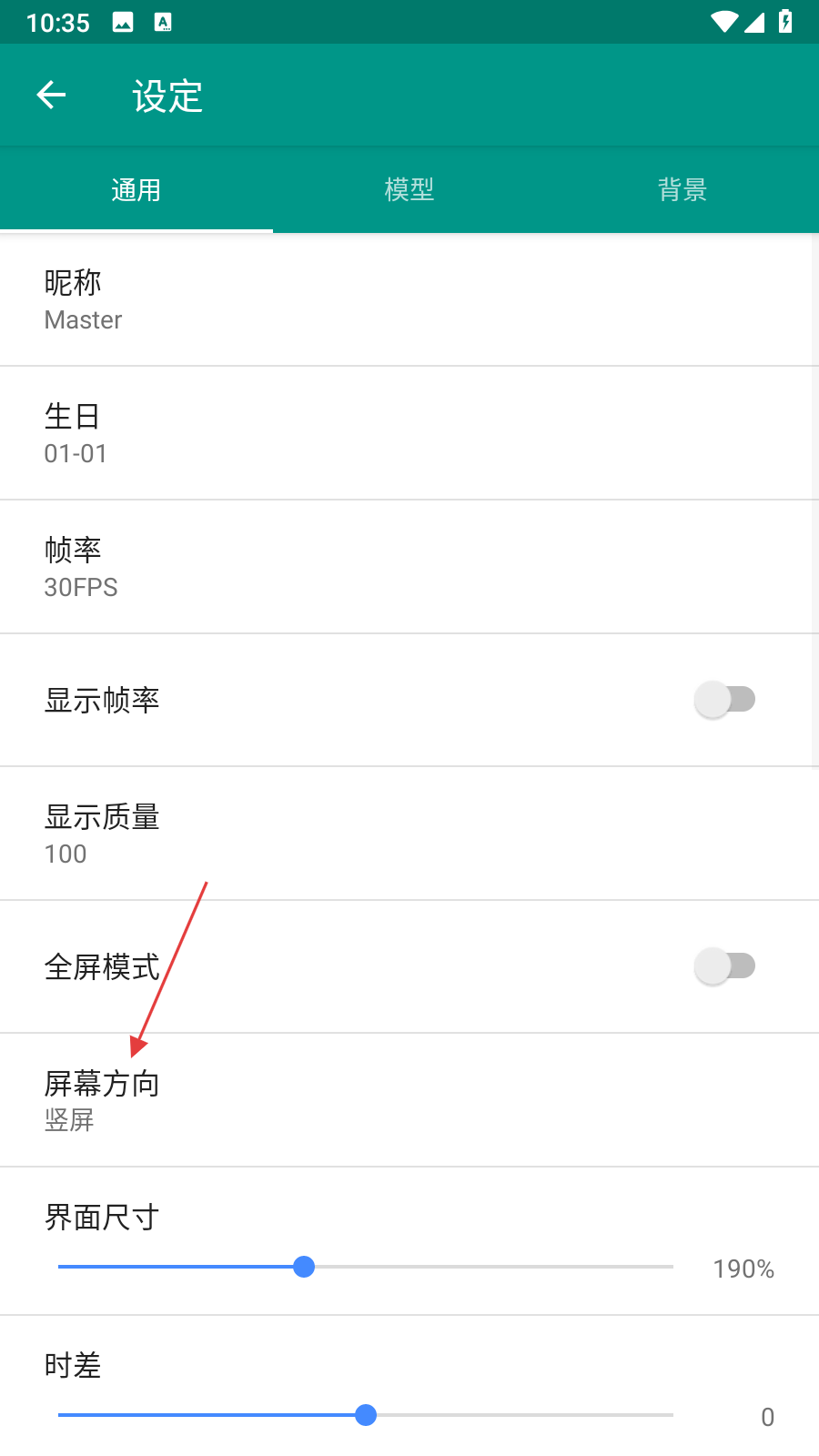 3、在設(shè)定界面的通用標(biāo)簽頁(yè)下,找到屏幕方向選項(xiàng),點(diǎn)擊該選項(xiàng)彈出選擇窗口。