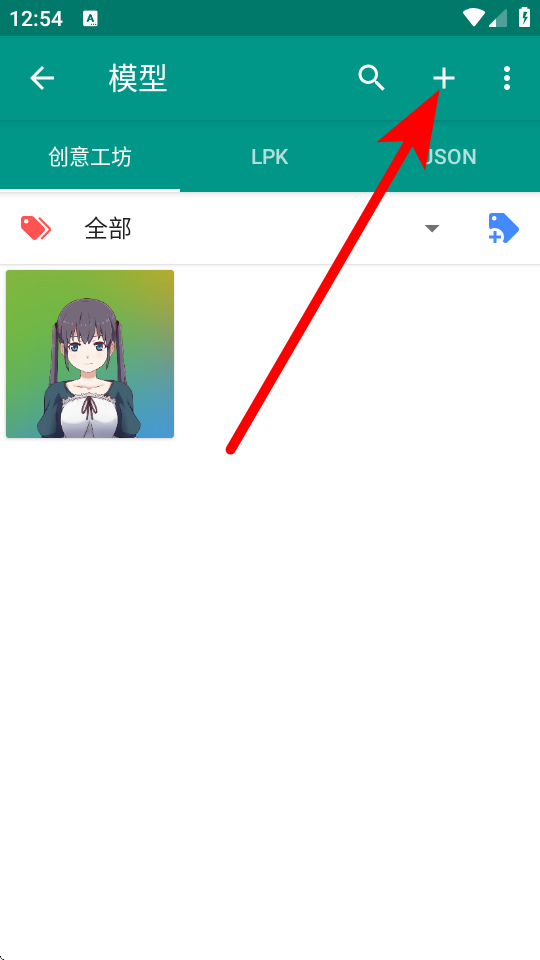 3、在模型界面,點(diǎn)擊右上角的+號(hào)圖標(biāo)。