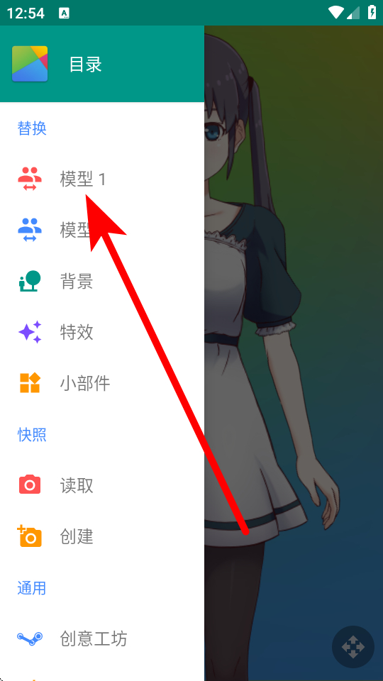 2、在目錄菜單中,點(diǎn)擊模型1選項(xiàng),進(jìn)入模型界面。