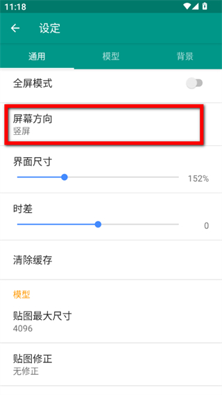 3、在設(shè)定頁(yè)面,點(diǎn)擊屏幕方向選項(xiàng),彈出方向選擇菜單。