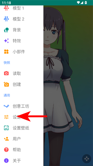 2、在彈出的目錄列表中找到設(shè)定選項(xiàng)并點(diǎn)擊,進(jìn)入設(shè)定界面。