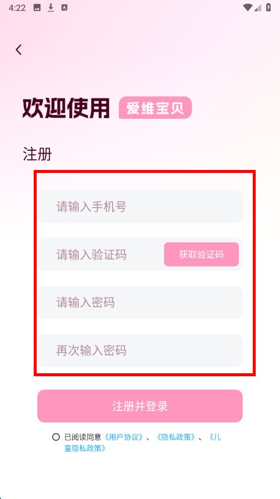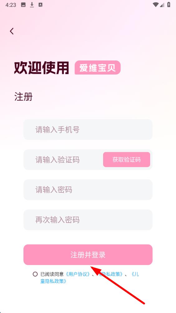 3、最后點(diǎn)擊注冊(cè)并登錄按鈕,即可完成愛維寶貝的注冊(cè)。