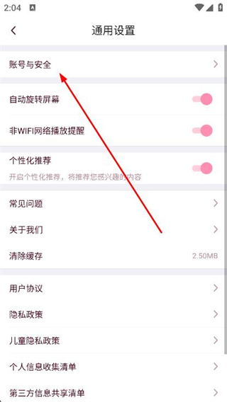 3、進(jìn)入通用設(shè)置頁(yè)面后,點(diǎn)擊賬號(hào)與安全選項(xiàng)。