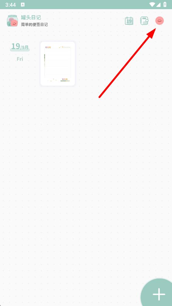 1、打開罐頭日記app,點(diǎn)擊主界面右上角的笑臉圖標(biāo),進(jìn)入相關(guān)設(shè)置界面。
