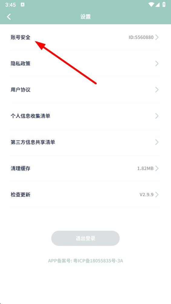3、在設(shè)置頁面里,點(diǎn)擊賬號(hào)安全選項(xiàng),進(jìn)入賬號(hào)安全管理界面。