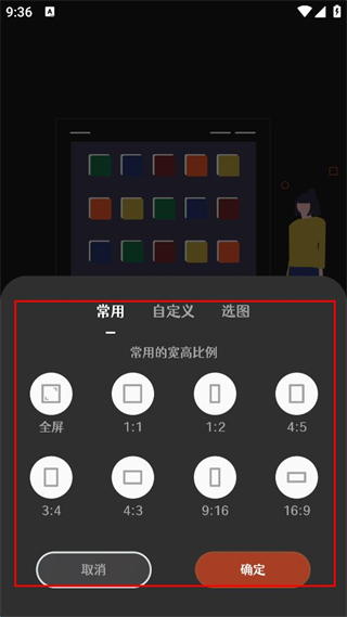 4、返回制作頁面,可選擇常用寬高比例如全屏、1:1等,點擊確定后開始制作。