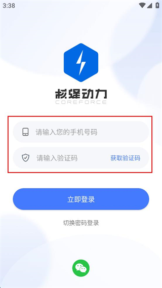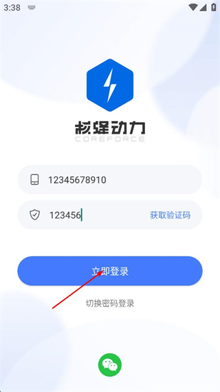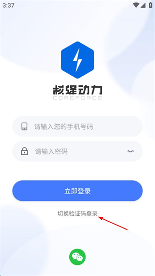 1、在核埕動力登錄界面,點擊切換驗證碼登錄。