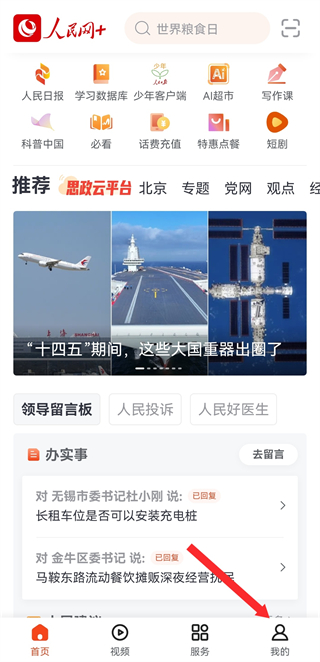 1、在人民網(wǎng)首頁,點擊底部我的按鈕,進入個人的頁面。