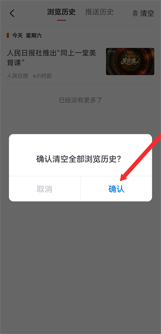 4、在系統(tǒng)提示框中,點擊確認按鈕,完成瀏覽記錄清空操作。