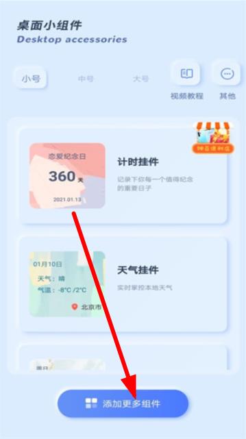 2、在主界面,點(diǎn)擊添加更多組件選項(xiàng),進(jìn)入組件庫(kù)頁(yè)面。