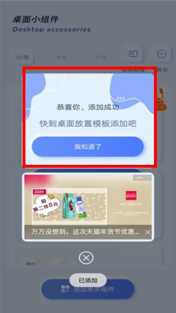 4、添加成功后,根據(jù)提示前往桌面放置模板即可完成組件添加。