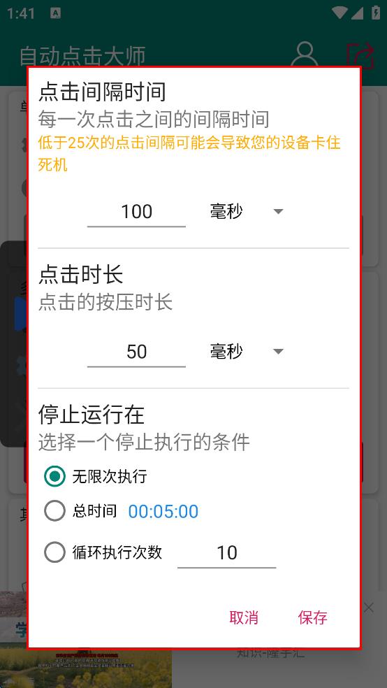 4、新增自動(dòng)點(diǎn)擊單點(diǎn)長(zhǎng)按時(shí)間設(shè)置;