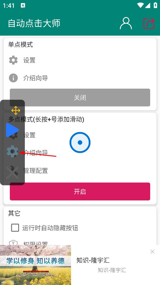 3、開啟單點(diǎn)模式后,點(diǎn)擊左側(cè)彈出的設(shè)置圖標(biāo),進(jìn)入單點(diǎn)模式設(shè)置頁面。