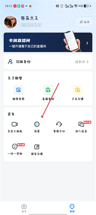 2、在個(gè)人中心頁面,找到設(shè)置選項(xiàng)并點(diǎn)擊進(jìn)入軟件設(shè)置。