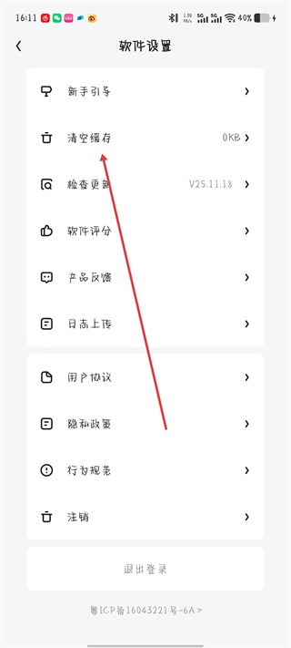 3、在軟件設(shè)置界面中,找到清空緩存選項(xiàng)并點(diǎn)擊。