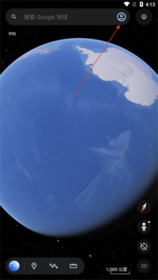 1、打開(kāi)谷歌地球APP,點(diǎn)擊賬號(hào)圖標(biāo)。