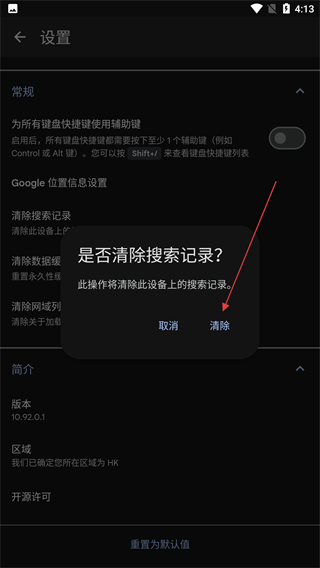 3、在設(shè)置頁(yè)面,點(diǎn)擊清除搜索記錄選項(xiàng)。